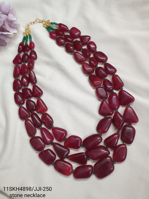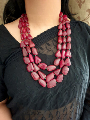 Ruby Unshaped Beaded Long Layered Necklace Set