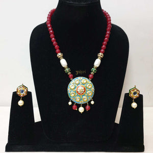 Sea Green Meenakari Pendant With Earrings