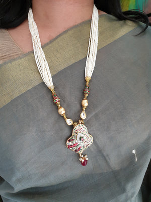 An elegant seed beads stone meenakari pendant with the most stunning festoon. The perfect accessory for your occasion. This necklace is handcrafted with love