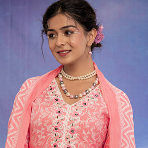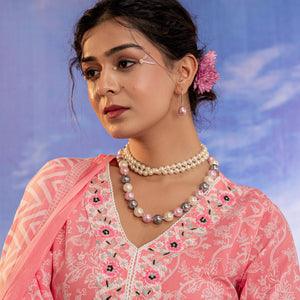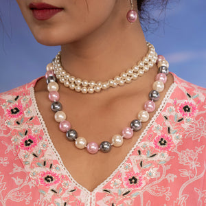 Multi Shell Pearl Necklace And Pearl Double Layer Choker With Earrings