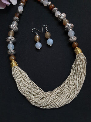An elegant seed beads necklace with the most stunning festoon. The perfect accessory for your occasion. This necklace is handcrafted with love