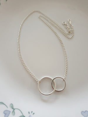 Two-Linked Circle Necklace. This beautiful and simple Two-Linked Circle Necklace features a handmade link made of two graduated circles