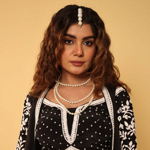 An elegant Pearl bead necklace and maang tikka with the most stunning festoon. The perfect accessory for your occasion. This necklace is handcrafted with love