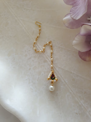 Small Kundan Stone Pearl Beaded Maang Tikka