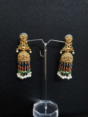 An elegant multi-stone Jhumki earring with the most stunning festoon. The perfect accessory for your occasion. These earrings are handcrafted with love