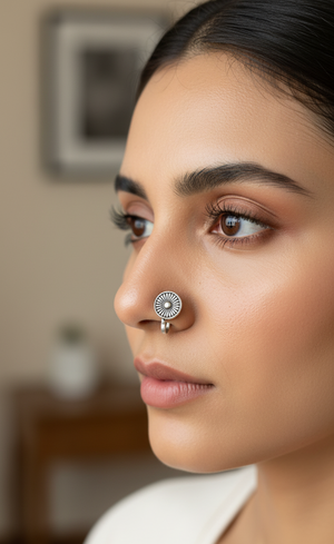 An elegant sun-floral nose pin the most stunning festoon. The perfect accessory for your occasion. This nose pin is handcrafted with love