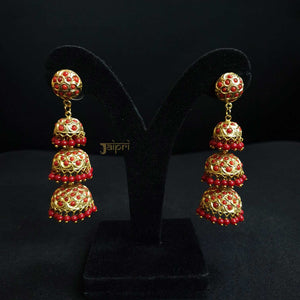 Three Layer Jhumki Gold Design Munga Stone Earrings