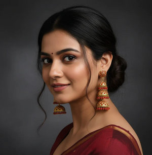 Styling: These are the perfect accessories to accentuate the elegance of your traditional outfit, furthermore, adding a perfect pop of color and edginess. The beautiful elements of the earrings go well with the saree or any western dress. A statement earrings is enough to turn the entire outfit look amazing. It looks better with a solid color outfit or pastel outfit.