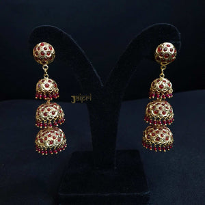 An elegant munga stone jadau earrings with the most stunning festoon. The perfect accessory for your occasion. This earrings is handcrafted with love