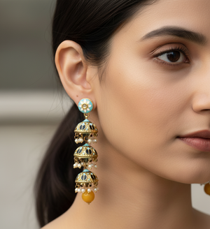 Styling: These are the perfect accessories to accentuate the elegance of your traditional outfit, furthermore, adding a perfect pop of color and edginess. The beautiful elements of the earrings go well with the saree or any western dress. A statement earrings is enough to turn the entire outfit look amazing. It looks better with a solid color outfit or pastel outfit.