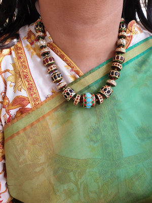 Styling: These are the perfect accessories to accentuate the elegance of your traditional outfit, furthermore, adding a perfect pop of color and edginess. The beautiful elements of the necklace go well with the saree or any Western dress. A statement necklace is enough to make the entire outfit look amazing. It looks better with a solid color outfit or pastel outfit.