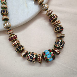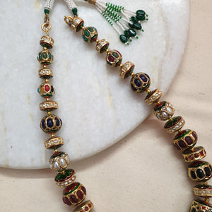 An elegant designer Jadau necklace with the most stunning festoon. The perfect accessory for your occasion. This necklace is handcrafted with love