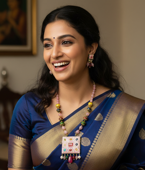 Styling: These are the perfect accessories to accentuate the elegance of your traditional outfit, furthermore, adding a perfect pop of color and edginess. The beautiful elements of the necklace go well with the saree or any Western dress. A statement necklace is enough to turn the entire outfit look amazing. It looks better with a solid color outfit or pastel outfit.