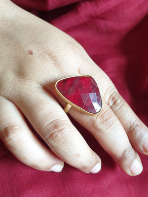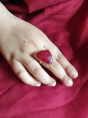 An elegant triangle red stone adjustable ring the most stunning festoon. The perfect accessory for your occasion. This ring is handcrafted with love