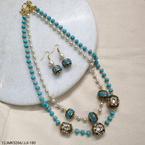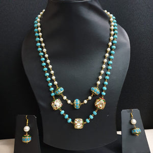Turquoise and Pearl Beaded Jadau Necklace With Earrings