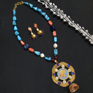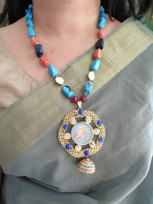 Channel strength and spirituality with our Turquoise Beaded Lord Hanuman Pendant Set, accompanied by coordinating earrings. This set exudes devotion and style, a unique addition to your collection
