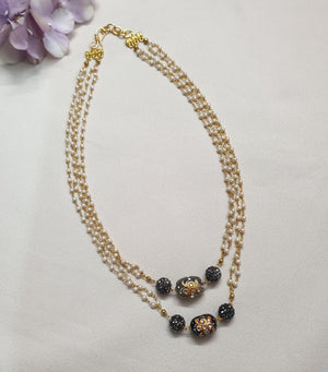 An elegant black grey beaded necklace with the most stunning festoon. The perfect accessory for your occasion. This necklace is handcrafted with love