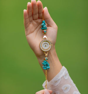 Discover our exquisite Turquoise Uncut Jadau Bead Wrist Watch, blending traditional elegance with modern style. Perfect for any occasion, this unique timepiece adds a touch of sophistication to your wrist.