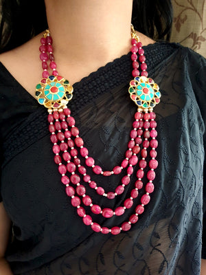 Turquoise Jadau Work Ruby Red Beads Necklace