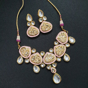 Elegance meets vibrancy in this Pink Meenakari Kundan Necklace Set. With its striking blue hues and intricate detailing, it's a stunning addition to any jewelry collection
