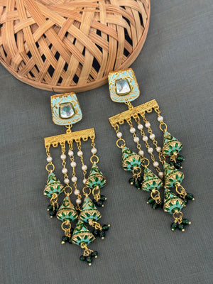 An elegant meenakari earring with the most stunning festoon. The perfect accessory for your occasion. This earrings are handcrafted with love