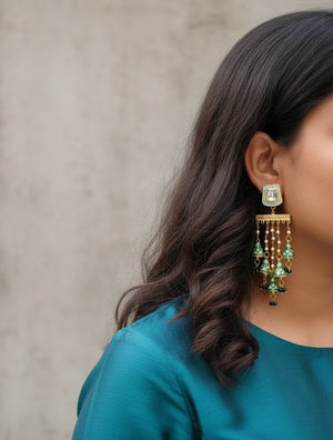 Styling: These are the perfect accessories to accentuate the elegance of your traditional outfit, furthermore, adding a perfect pop of color and edginess. The beautiful elements of the earrings go well with the saree or any Western dress. A statement earring is enough to make the entire outfit look amazing. It looks better with a solid color outfit or pastel outfit.