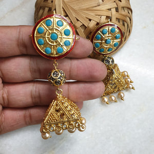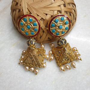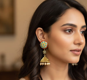 An elegant turquoise stone Jadau earrings with the most stunning festoon. The perfect accessory for your occasion. This earrings are handcrafted with love