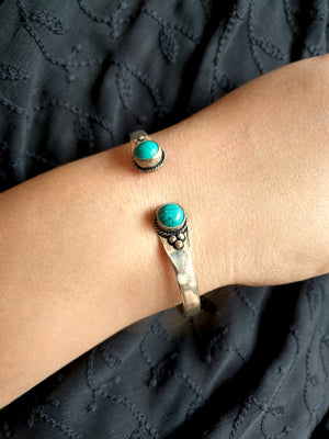 An elegant turquoise stone cuff bangle the most stunning festoon. The perfect accessory for your occasion. This bangle is handcrafted with love