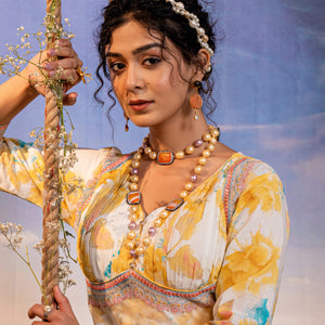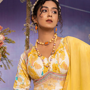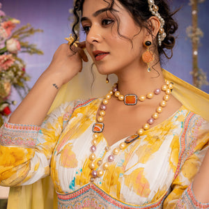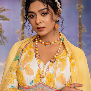 Two Layered Premium Pearl Stone Beads Necklace With Earrings