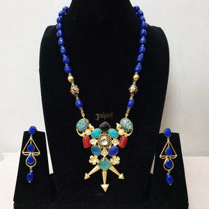 Unique Blue Stone Gold Fusion Pendant With Earrings