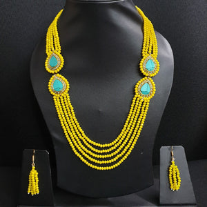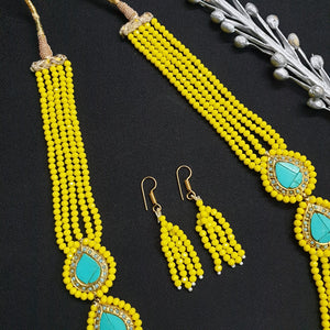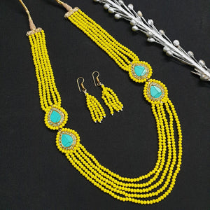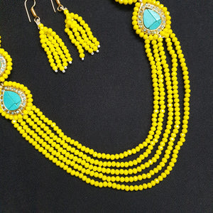 Unique Yellow Turquoise Beaded Necklace With Earrings