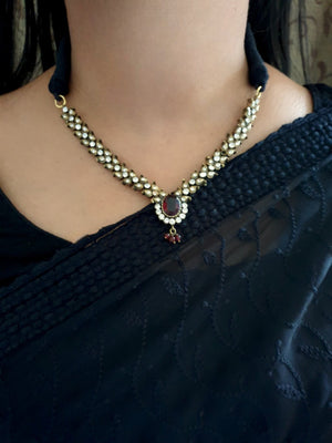 An elegant oxidised tone necklace with the most stunning festoon. The perfect accessory for your occasion. This necklace is handcrafted with love