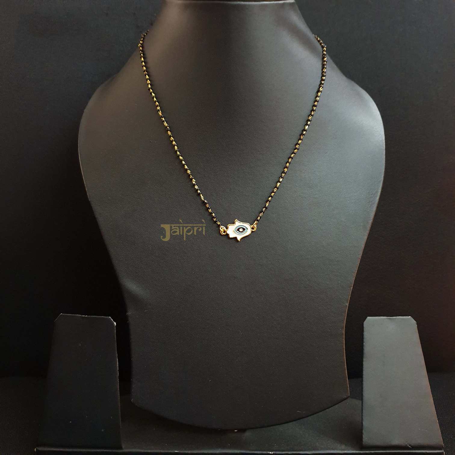 An elegant evil eye humsa mangalsutra the most stunning festoon. The perfect accessory for your occasion. This mangalsutra is handcrafted with love