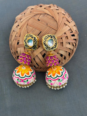 Elegant handpainted jhumki earrings with the most stunning festoon. The perfect accessory for your occasion. These earrings are handcrafted with love