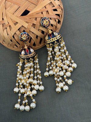 Dark Blue Meenakari Pearl Jhumki Earrings