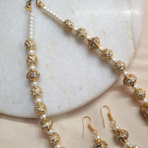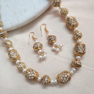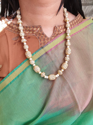 White Stone Jadau Beaded Necklace