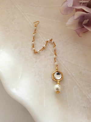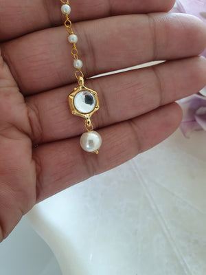 White Stone Meenakari Pearl Beaded Maang Tikka