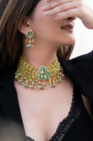 Yellow Beaded Choker with Intricate Kundan Detailing
