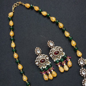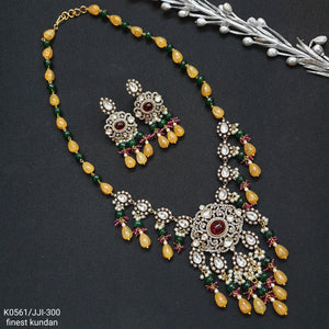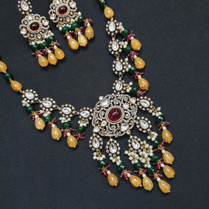 An elegant Kundan pendant set with earrings with the most stunning festoon. The perfect accessory for your occasion. This necklace is handcrafted with love