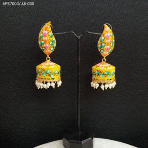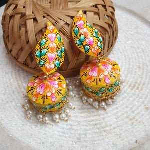 Elegant handpainted yellow jhumki earrings with the most stunning festoon. The perfect accessory for your occasion. These earrings are handcrafted with love