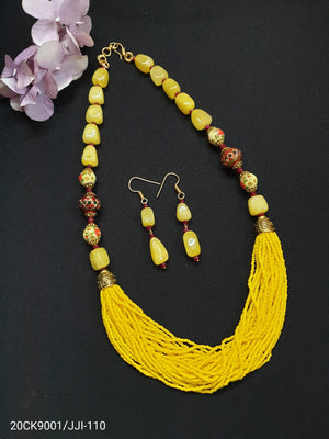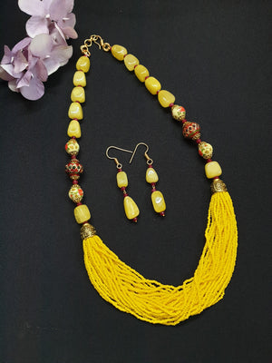 Yellow Jadau Seed Beads Necklace