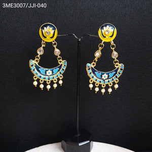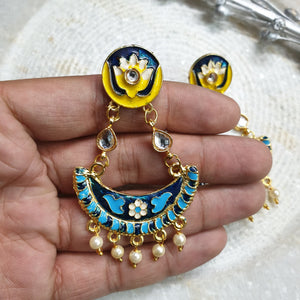 An elegant yellow-blue meenakari earring with the most stunning festoon. The perfect accessory for your occasion. This earrings are handcrafted with love