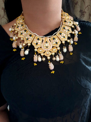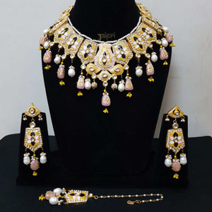 Yellow Meenakari Choker Set With Maangtikka And Earrings