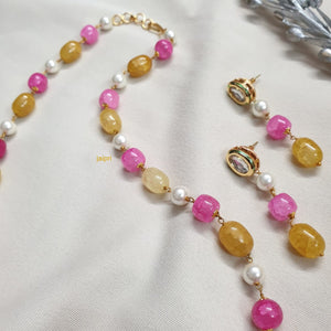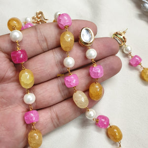 An elegant Stone beads dainty necklace and earrings with the most stunning festoon. The perfect accessory for your occasion. This necklace is handcrafted with love