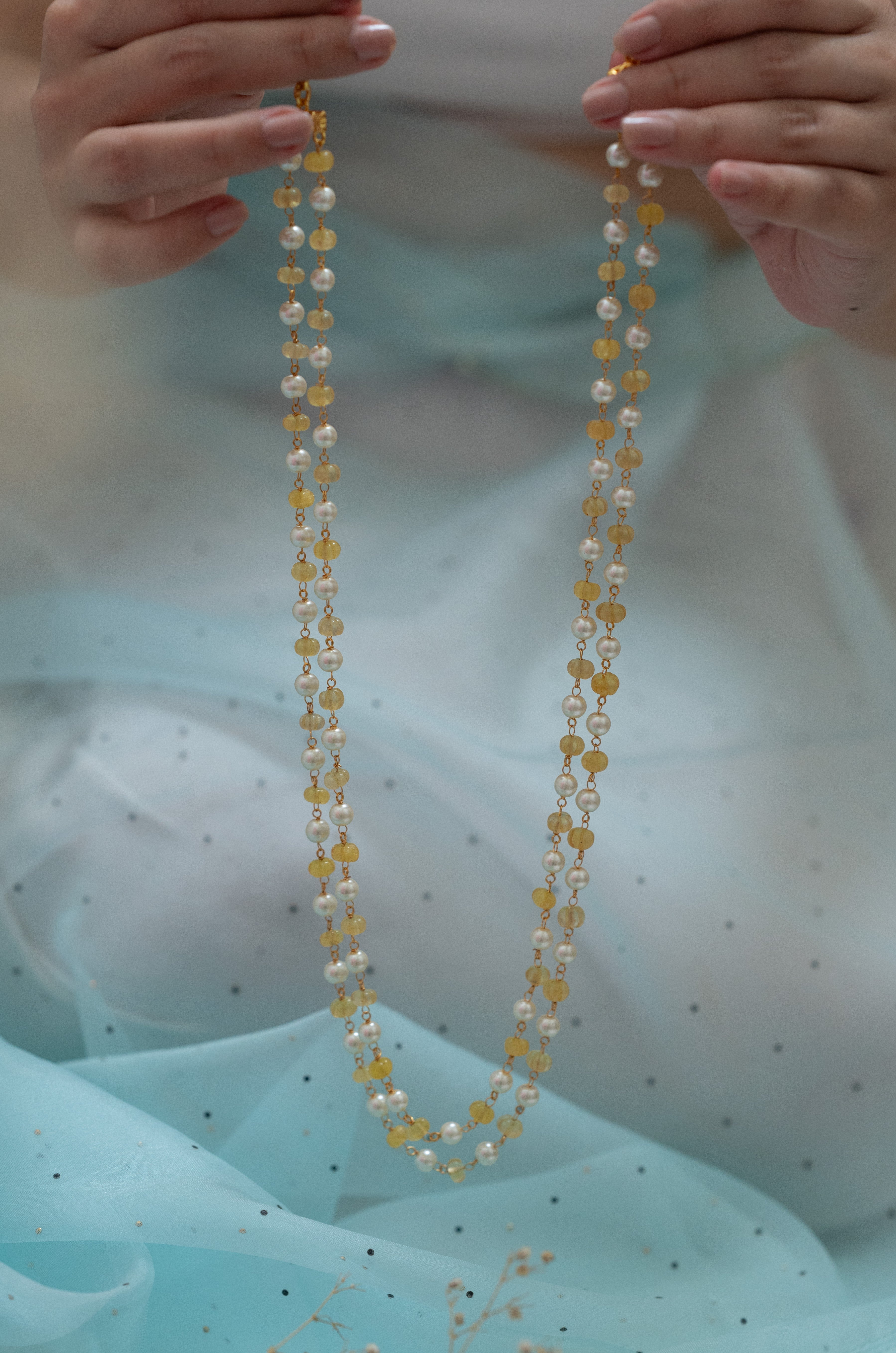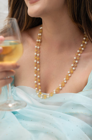 An elegant yellow pumpkin pearl beaded necklace with the most stunning festoon. The perfect accessory for your occasion. This necklace is handcrafted with love