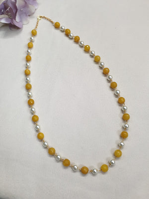 Yellow Stone and Pearl Beaded Single Layered Necklace