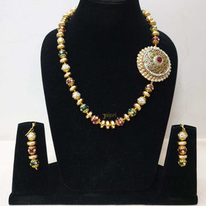 Designer Kundan & Multicolor Beads Stone Necklace With Earrings